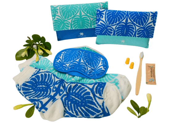 アメニティはサステナビリティを考慮し再利用可能なヘッドホンを提供。使用後は回収・洗浄され再利用される仕組みで、使い捨てプラスチック削減にも貢献しています。キットも一新し、竹素材や再生r-PET繊維を用いたアイマスクや竹製歯ブラシなどが収められており、環境に配慮した素材とFSC認証パッケージを採用するなど、環境にやさしいものに見直されました。