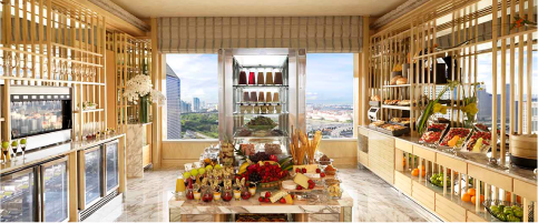 ワンランク上の滞在を求めるなら、クラブラウンジへのアクセス権が付いた「クラブデラックスマリーナ」のお部屋をおすすめします。32階に位置するラウンジでは、朝食からランチ、アフタヌーンティー、夕方のカクテル、そして就寝前のデザートまで、合計5回のフードサービスが行われます。 特にシンガポールは物価(特にアルコール類)が高い国ですが、ラウンジ内ではシャンパンを朝から自由にお愉しみいただけます。マリーナベイ・サンズを正面に望む特等席で、時間ごとに移り変わる空の色を眺めながら過ごす時間は格別です。