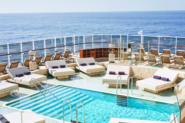 MSCグループが長年温めてきたラグジュアリー客船として、「経験豊富な旅行者に対してOCEAN STATE OF MIND(海とのつながり)を届けるための旅の提供」がブランドミッションとして掲げられました。4箇所のプール、全面ガラス張りのラウンジ、全室のテラスにあるデイベッド、アウトドアのフィットネスなど、海を最大限に感じられる様に配慮された客船にもその心が体現されています。