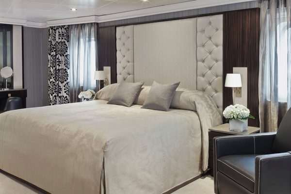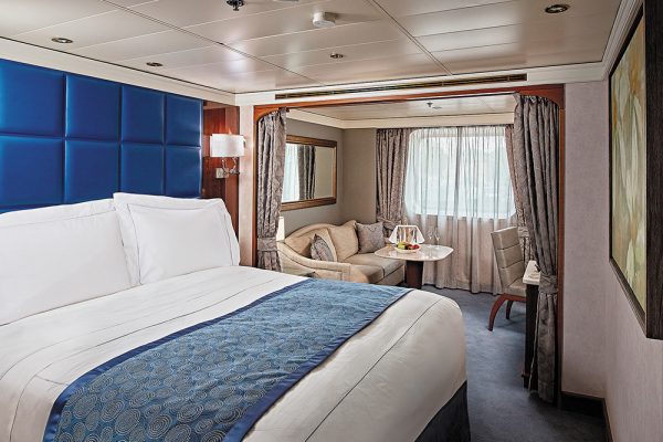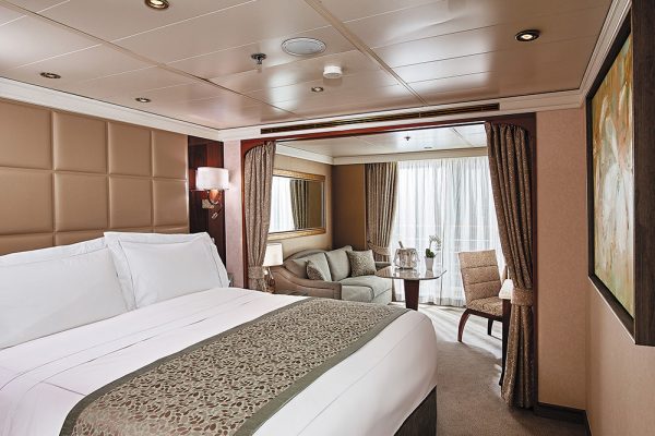 スペースと快適さを最大限に活かすよう工夫を凝らしてデザインされた贅沢なスイートです。プライベートバルコニーでくつろぎ、ラグジュアリーなバスアメニティで1日の疲れを癒し、次の寄港地での新たな冒険旅行に備えてゆったりとご休息いただけます。このスイートでは、寄港地ツアーやお食事の優先オンライン予約もご利用いただけます。また、特別なリクエストはパーソナルバトラーにお電話でお申し付けください。(デッキ6、10&11)