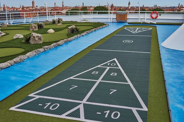 フィットネスセンターのアクティビティクラスに加えて、船内各所にあるその他のスポーツアクティビティもご活用ください。デッキ11にはゴルフネット、シャッフルボード、パドルテニス、そして円形のジョギングトラックがございます。Seven Seas Navigator®のトラックは、11周が約1.6キロメートルと同じ長さです。